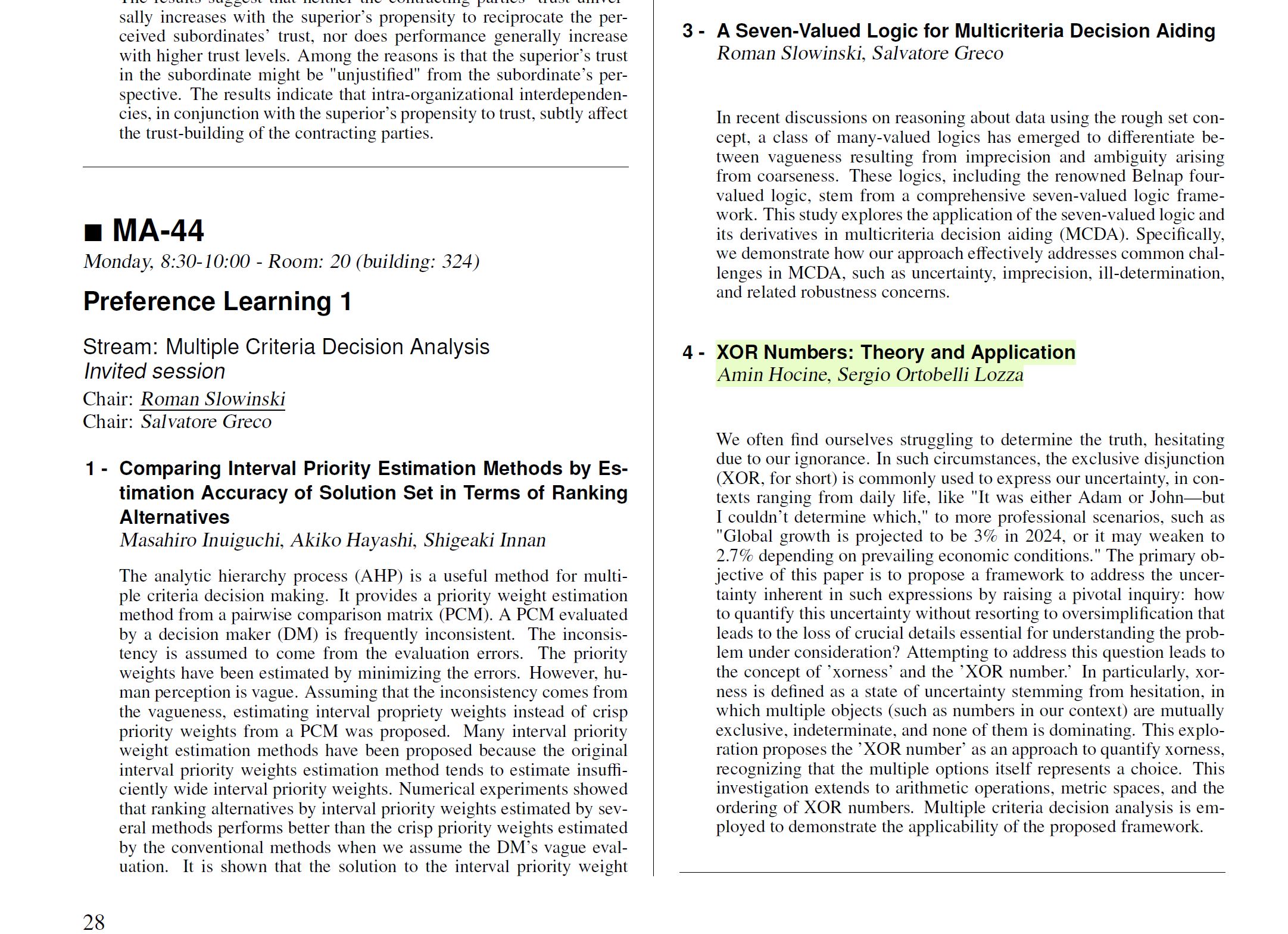 We recently presented the first part of the Xoruim Theory, titled “XOR Numbers: Theory and Application,” at the European Conference on Operational Research (EURO 2024) in Copenhagen, Denmark.